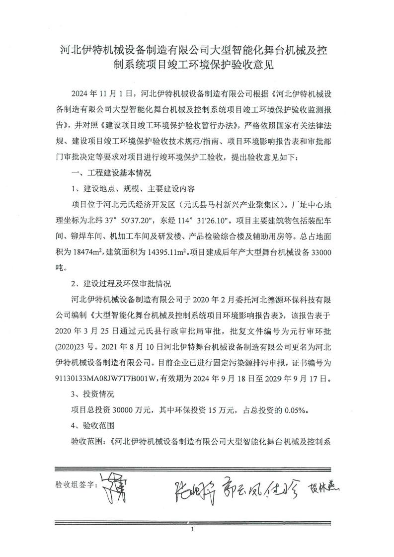 根据《国院关于改<建设项目环保护管理条例>的决定》(国务院令第682号)以及生态环境部《建设项目竣工环境保护验收暂行办法》和河北省环境保护厅《建设项目环境影响评价文件审批及建设单位自主开展环境保护设施验收工作指引(试行)的通知》(冀环办字[2017]727号)有关要求,现将U8手机平台《U8手机平台大型智能化舞台机械及控制系统项目竣工环境保护验收监测报告)公示如下:
