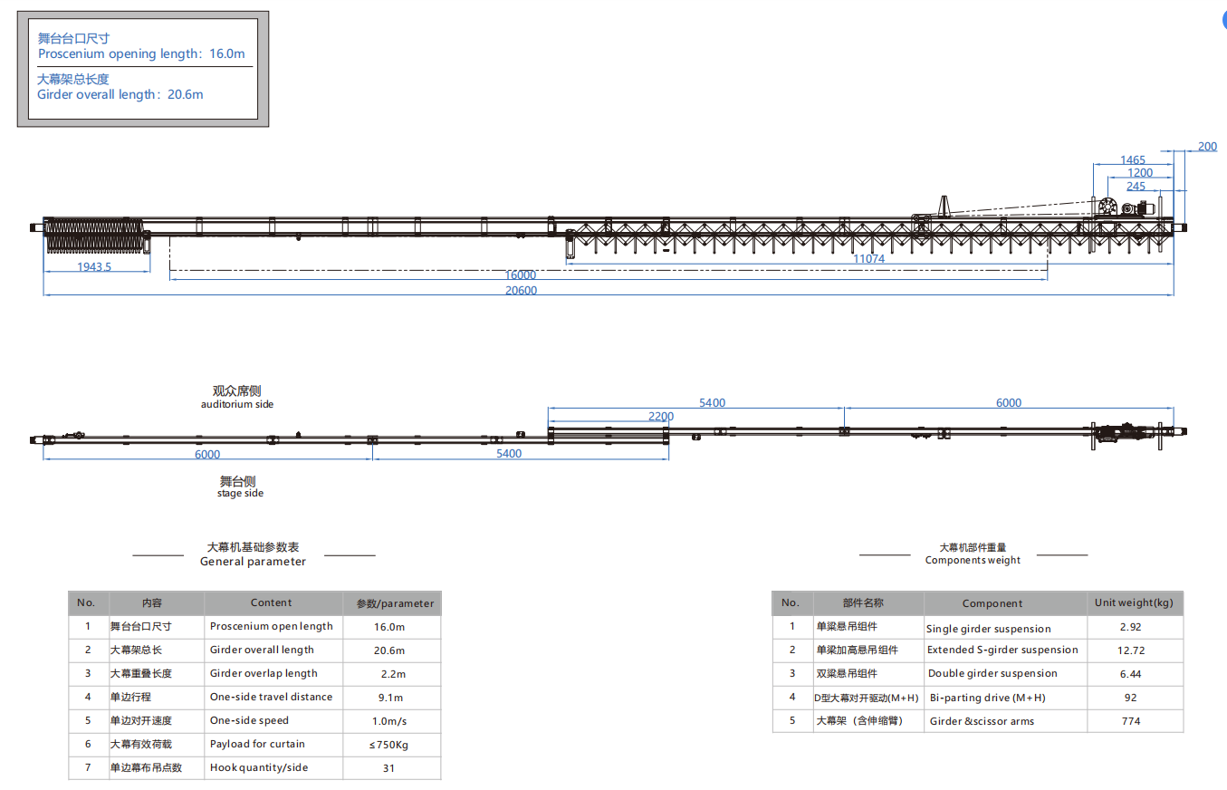 大幕机选型图 16.0m/20.6m